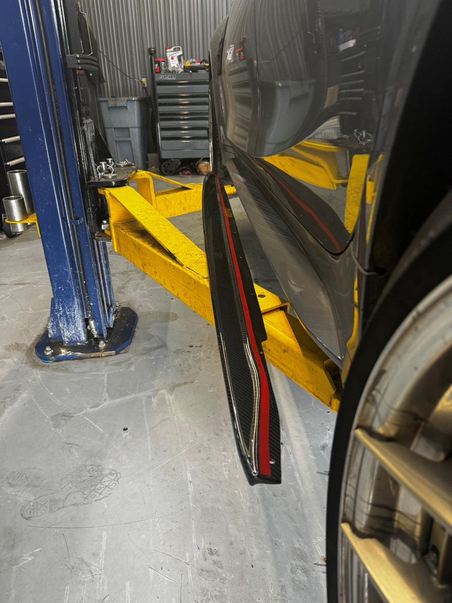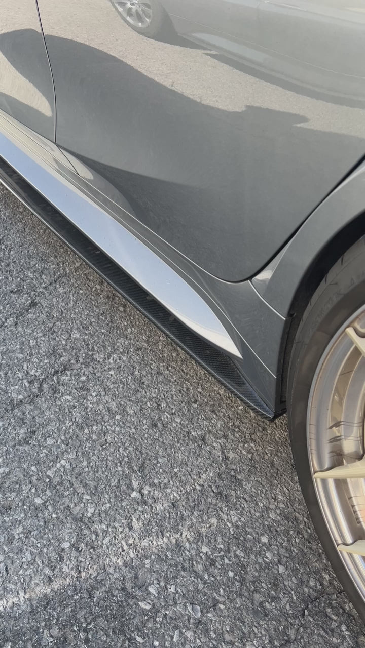 These extensions are designed to enhance the side and rear of your vehicle, giving it a lower and more complete appearance. They can be installed with your original black side skirts, or for a more complete carbon look, they can be combined with our OEM-style side skirts.