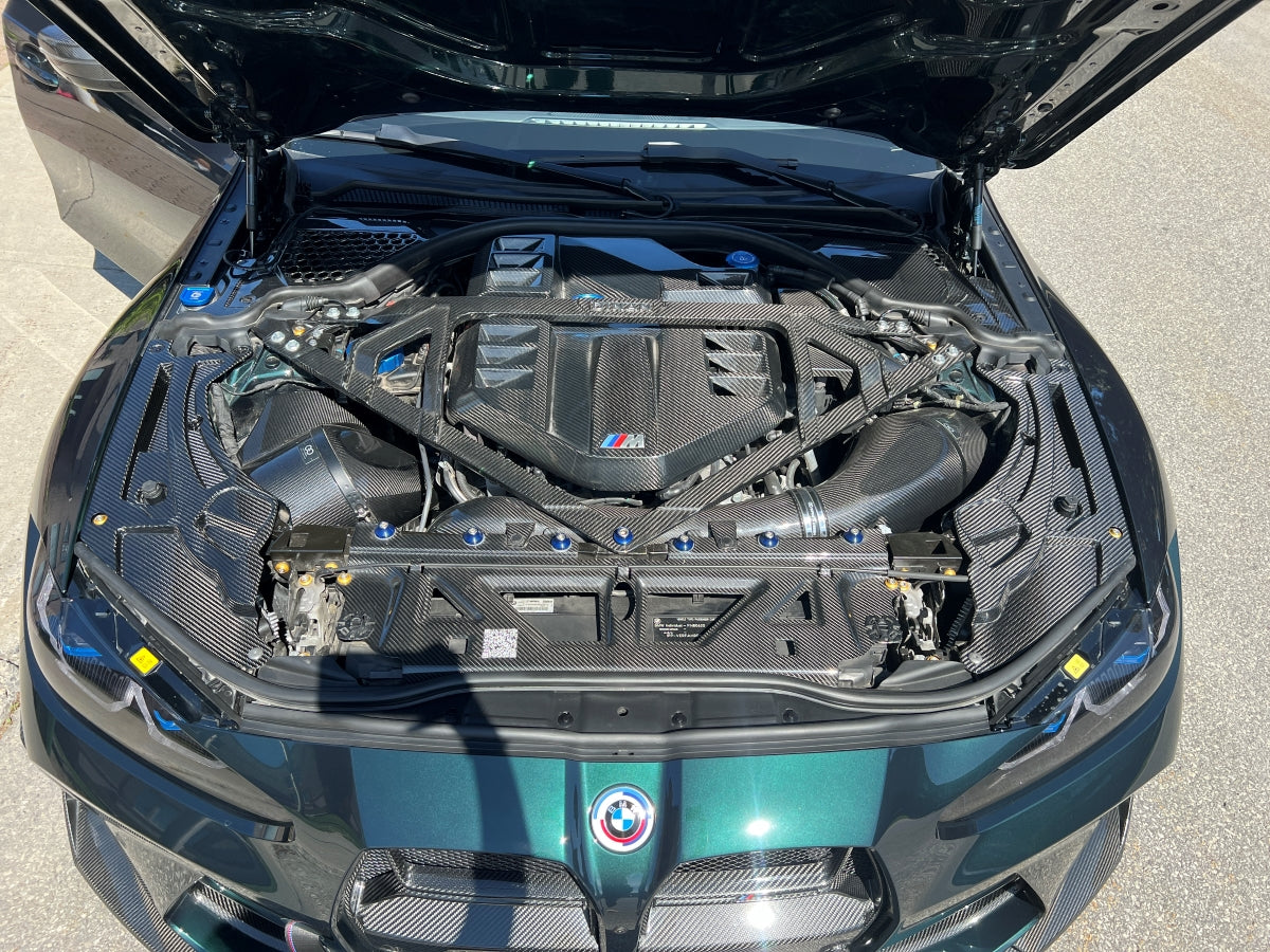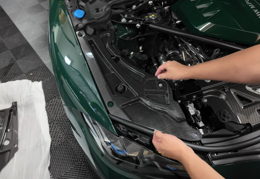 Tailored specifically for BMW G chassis M3, and M4 models, these carbon fiber panels are designed to cover your front side engine bay components, giving it a clean and carbon look.