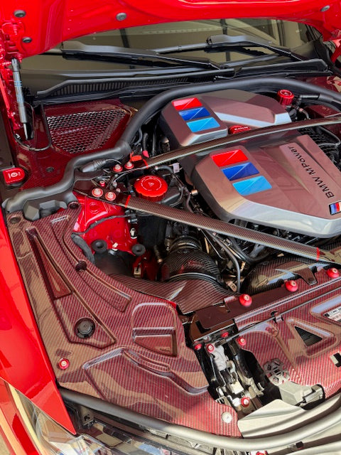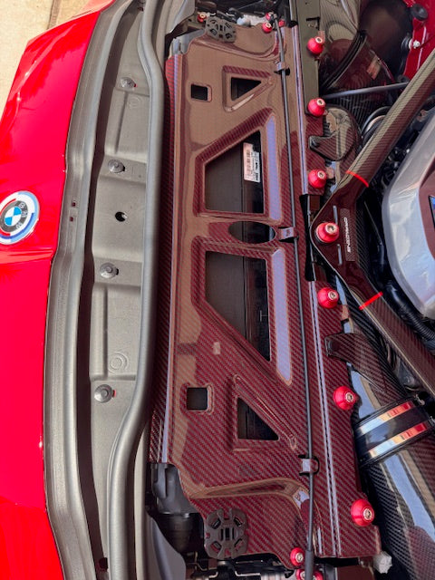 This 11-piece engine bay set offers exceptional value. It is intended for those seeking a distinctive style upgrade. You may choose to order a partial set or request a different carbon fiber color, or finish (matte).